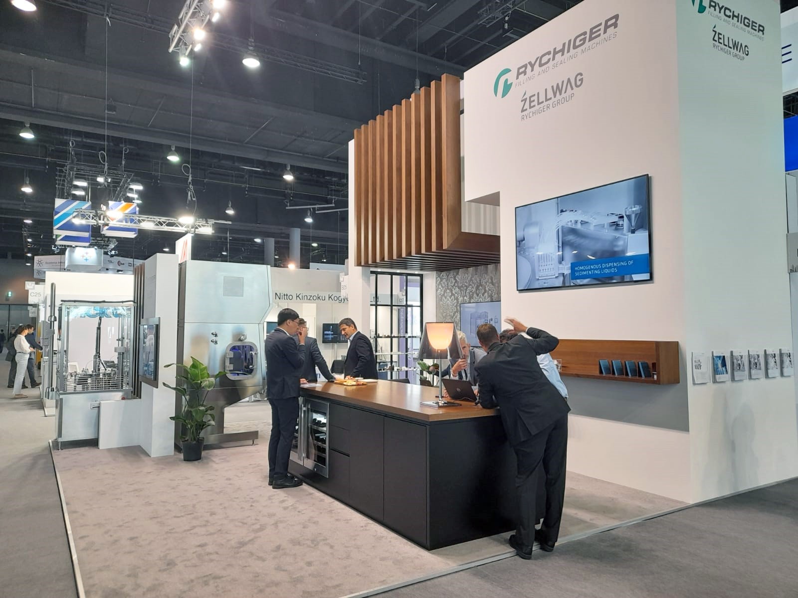 In diesem Jahr haben wir uns für eine Zusammenarbeit mit der Zellwag Pharmtech AG aus der Rychiger Gruppe entschieden, auf deren Stand wir unseren Sterilitätstest-Isolator zusammen mit modernsten Abfüll- und Verschließanlagen der Zellwag Pharmtech AG ausgestellt haben.
