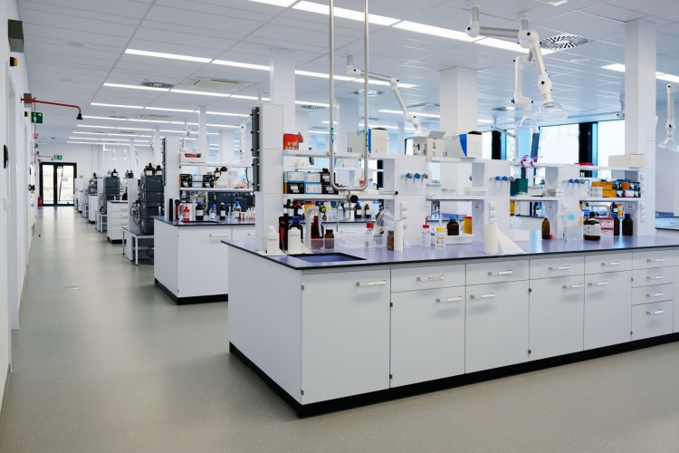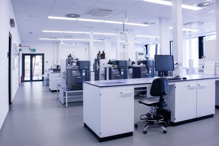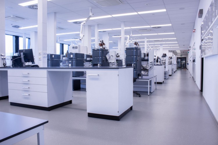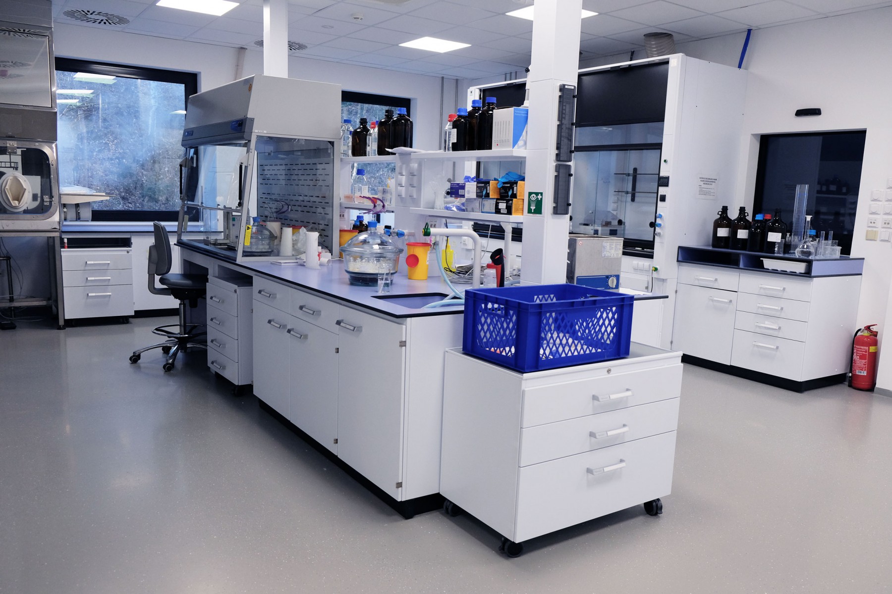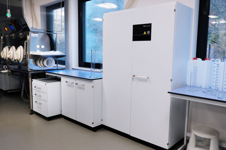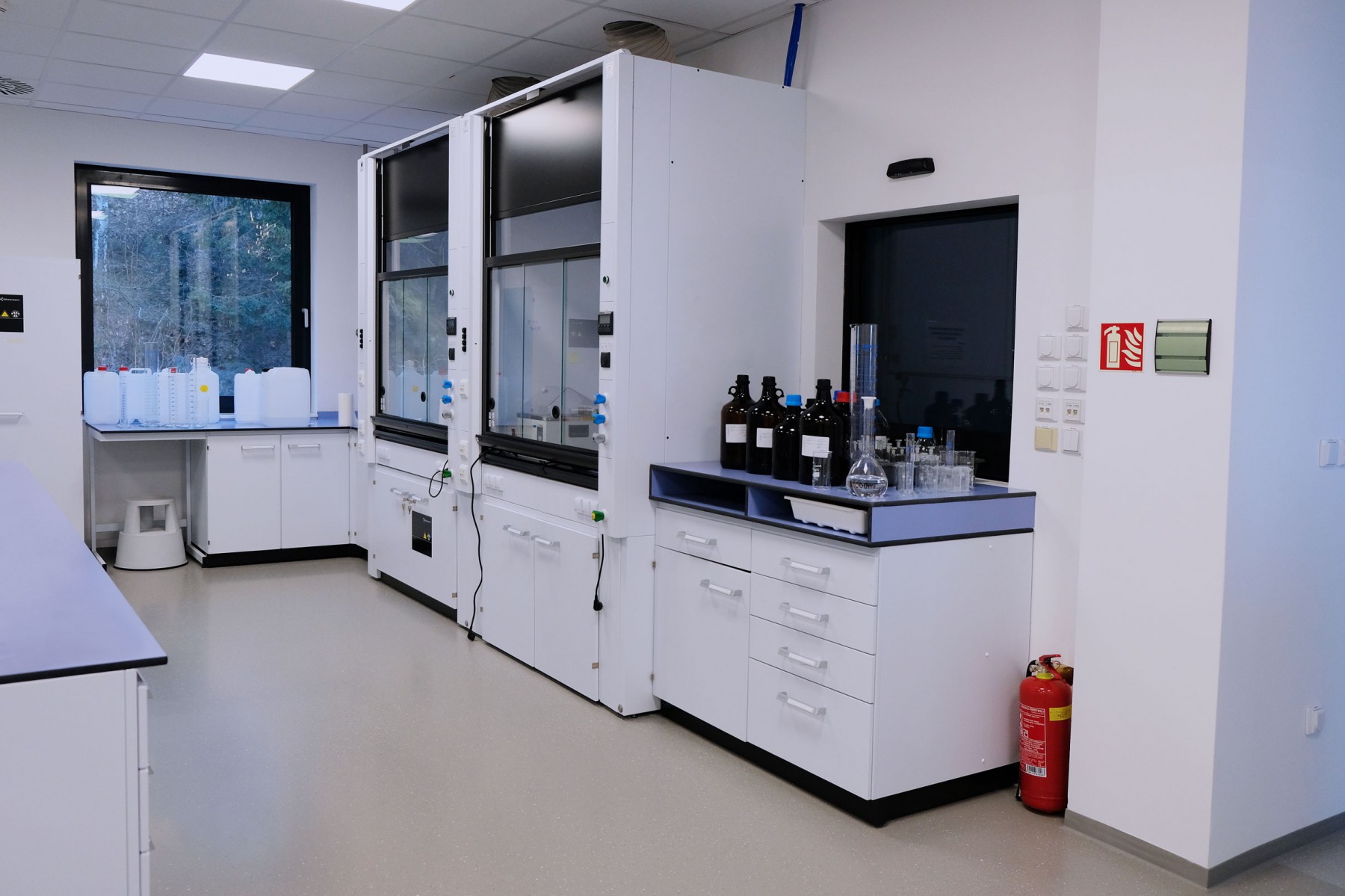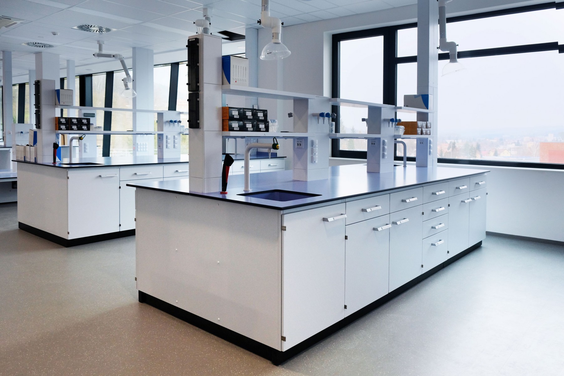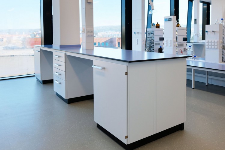 A separate delivery was metal laboratory furniture, including electrically operated fume hoods communicating with the A/C system. The delivery of laboratory furniture in the extent of one floor was from Köttermann GmbH.