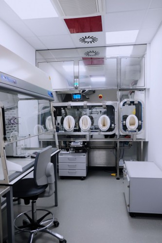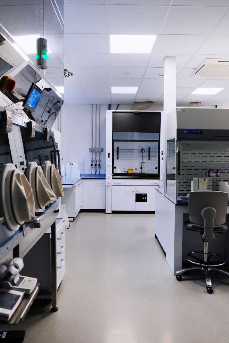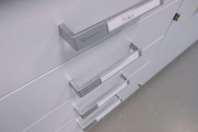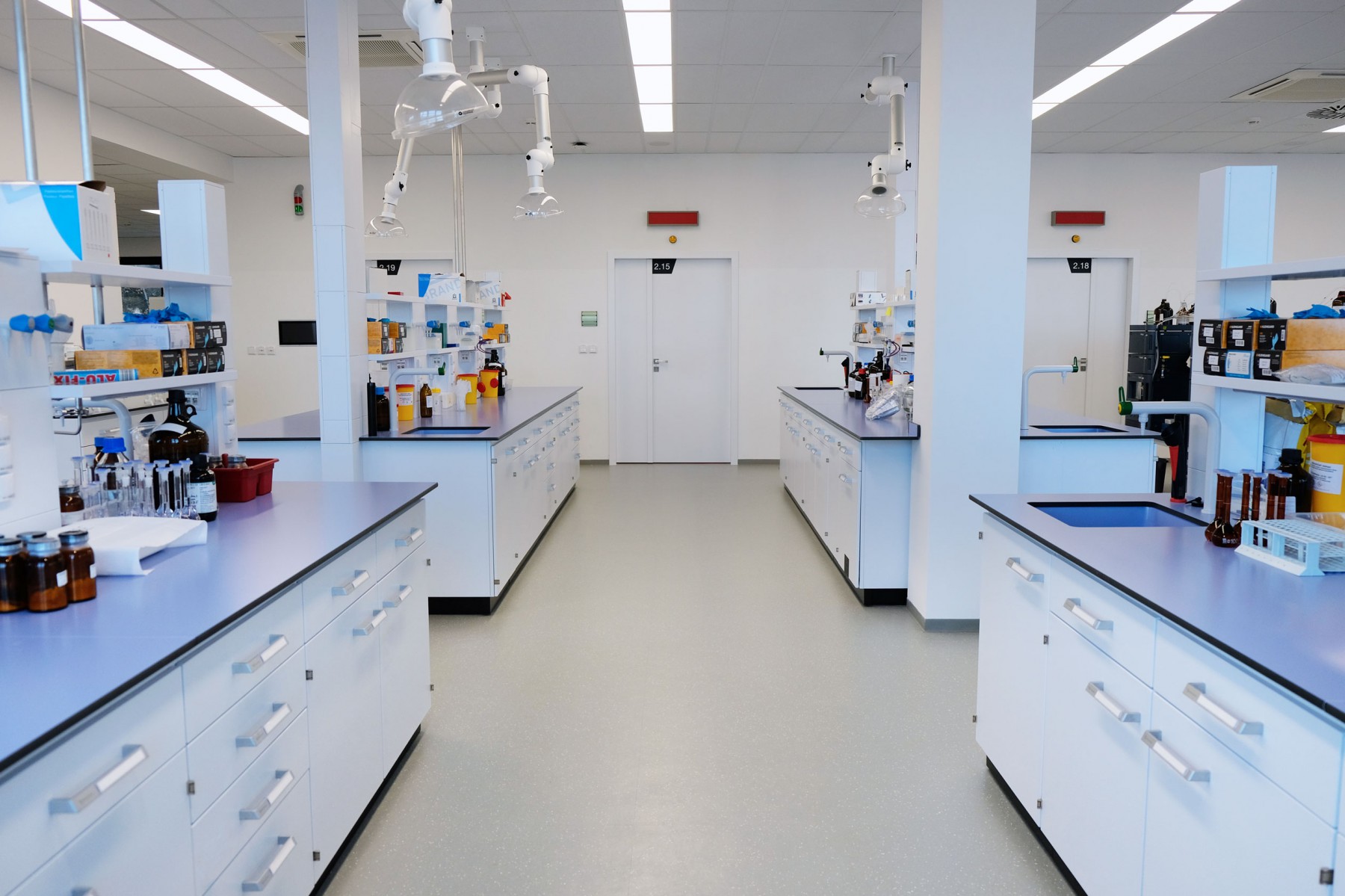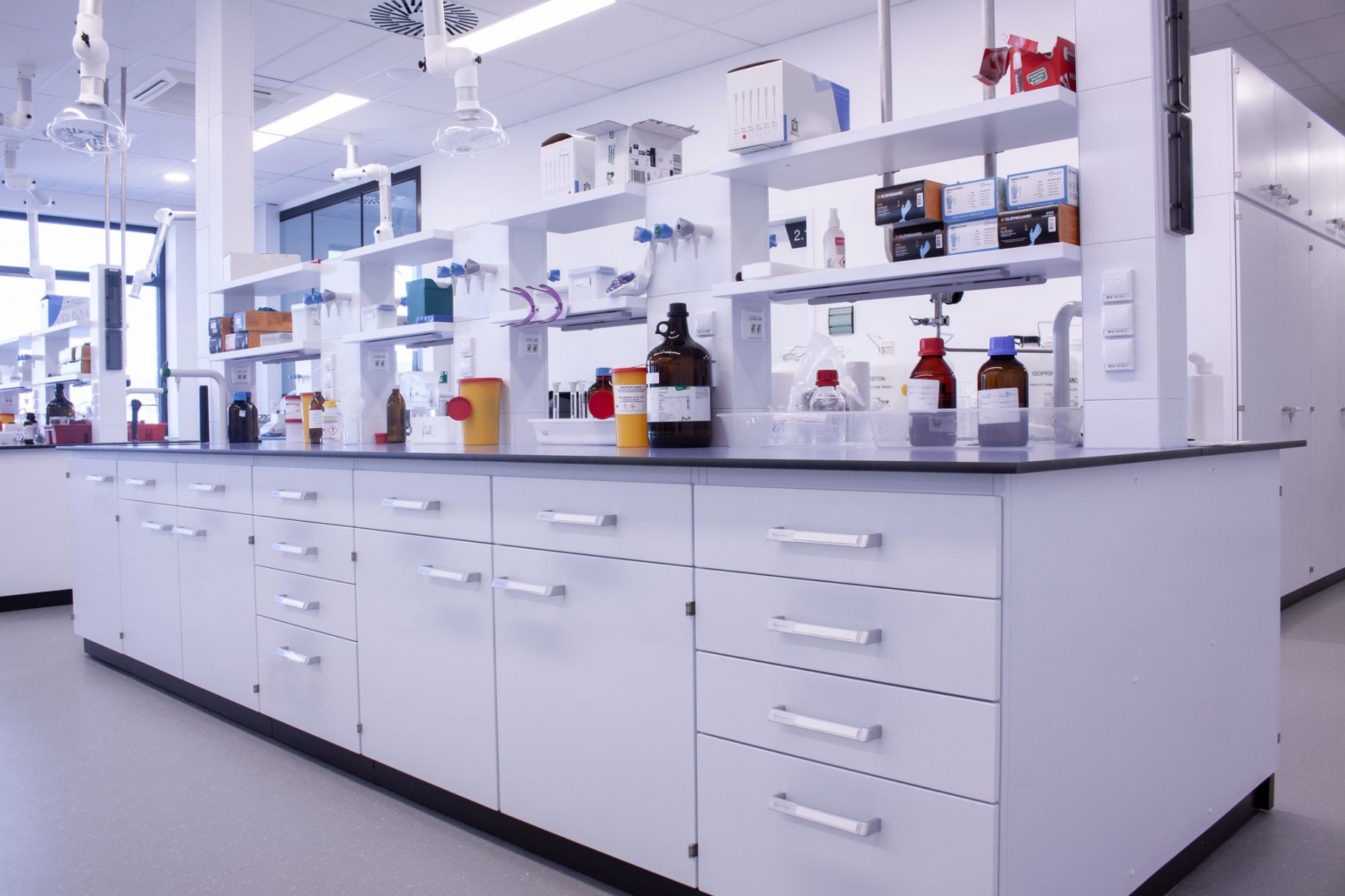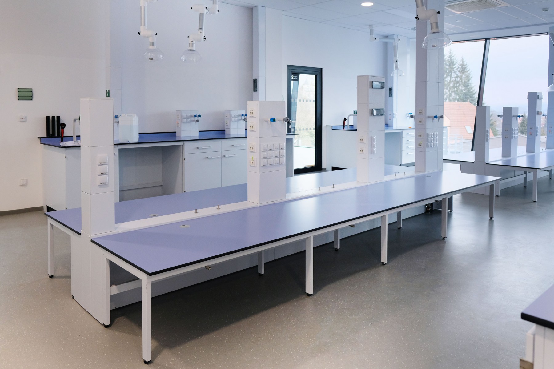 A separate delivery was metal laboratory furniture, including electrically operated fume hoods communicating with the A/C system. The delivery of laboratory furniture in the extent of one floor was from Köttermann GmbH.