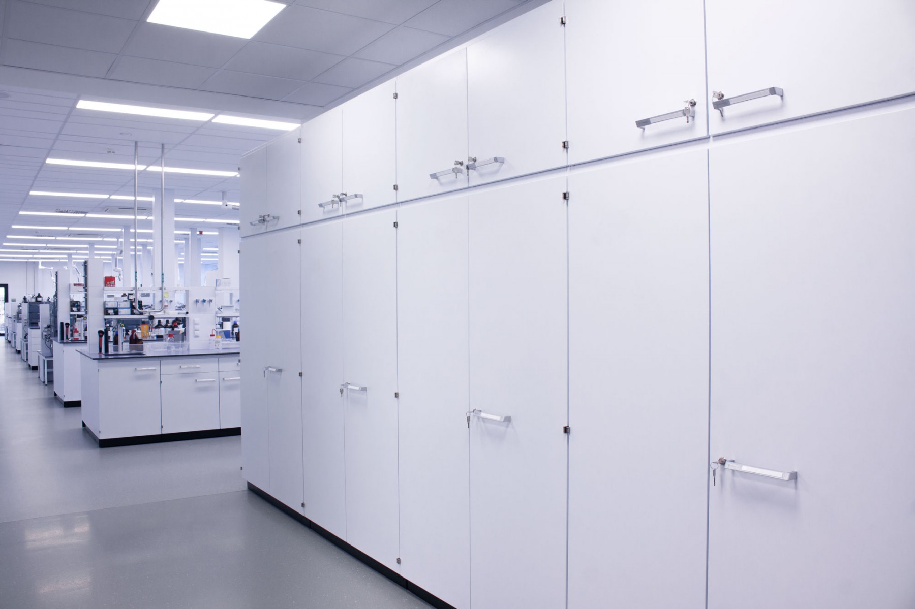 A separate delivery was metal laboratory furniture, including electrically operated fume hoods communicating with the A/C system. The delivery of laboratory furniture in the extent of one floor was from Köttermann GmbH.